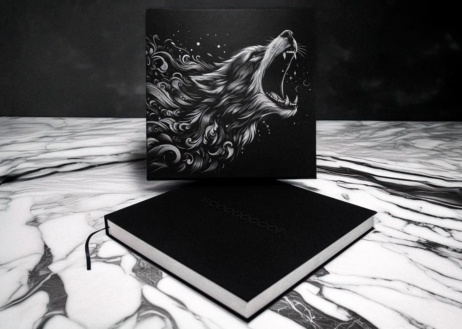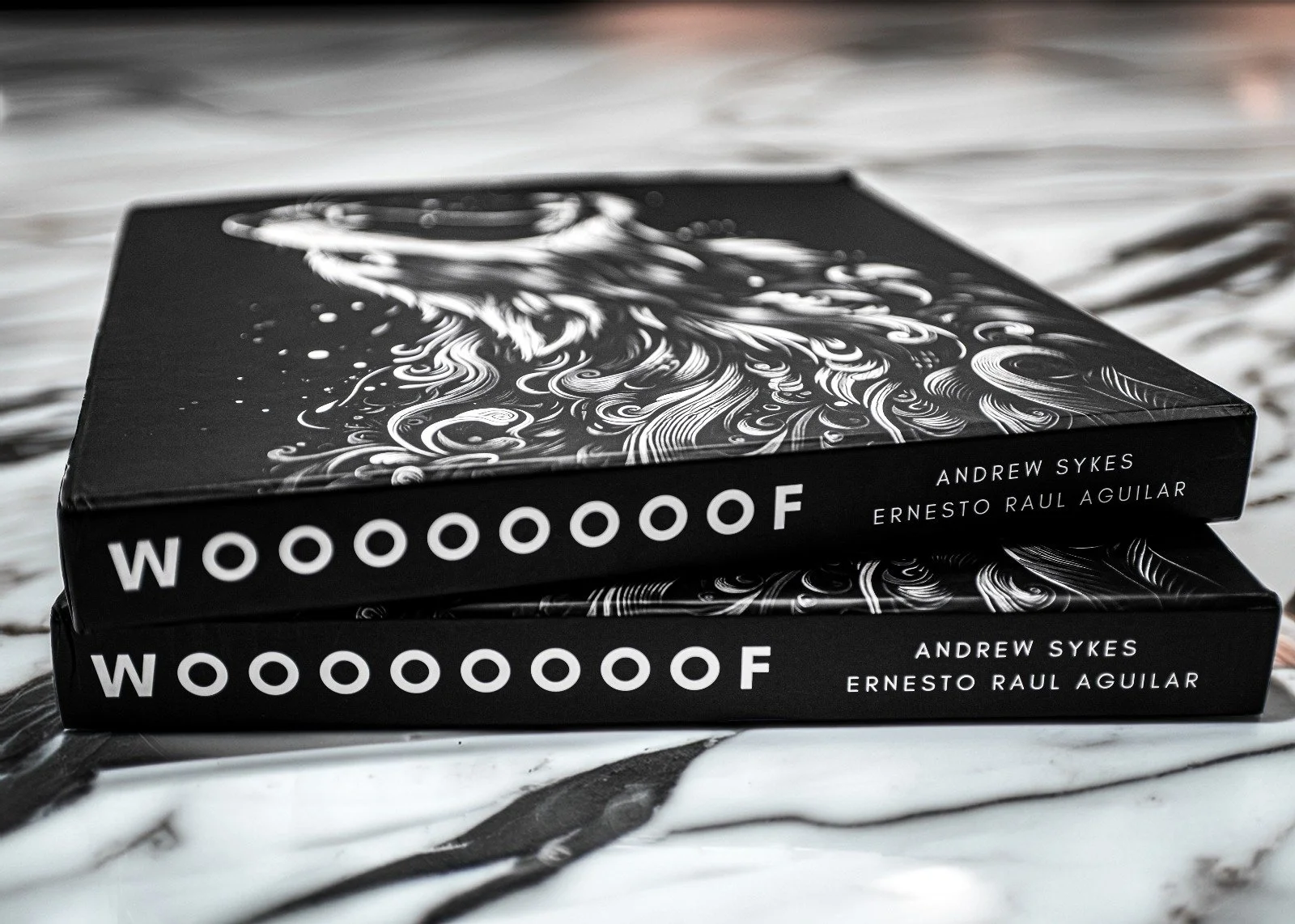 When you pick it up, you might yell “WOOOOOOOOF” because it’s heavy: physically, visually and occasionally poetically. A large-format hardcover with over 350 pages in full color and howling text. WOOOOOOOOF is bound, embossed, boxed and made to lay flat, every part an object of art as much as a literary adventure. We had to do something to contain the beast within!